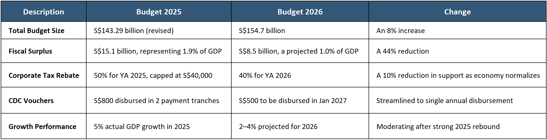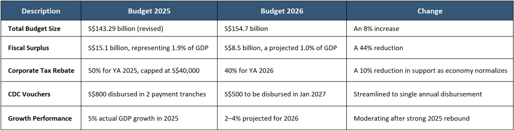 Budget 2026 represents Singapore’s confident transition from crisis management to strategic positioning. Where Budget 2025 provided generous but temporary relief amid uncertainty, Budget 2026 makes calibrated bets on AI, advanced manufacturing, and supply chain resilience – accepting a smaller fiscal surplus to secure Singapore’s relevance in a fragmenting world.